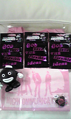 来た来た! 2008年05月31日 + うたうたい + 0 ハイコミグッツ通販品~!ZUMAは車のオブジェにしようかと思ってたんですがどーすべ。なんか足の裏に書いてあるしな~(足の裏に両面テープ貼ろうと考えてました)でも車に乗せるぞ!エアフレッシュナーも取り替えよう(笑)Tはある意味記念で購入。旦那さんに誕生日プレゼンツとして買ってもらった品です!うぉ~ウレスィイ!今からKinKiの夏ツアーに怯える俺ですが(笑)6月のGLAYの新曲今から楽しみだぜっ!ファンクラブ限定DVDも今から楽しみだぜっ!友達と一緒にRe・ハイコミだー(笑)!…でも今はKinKiに熱を切り替えなきゃな(笑) [0回]